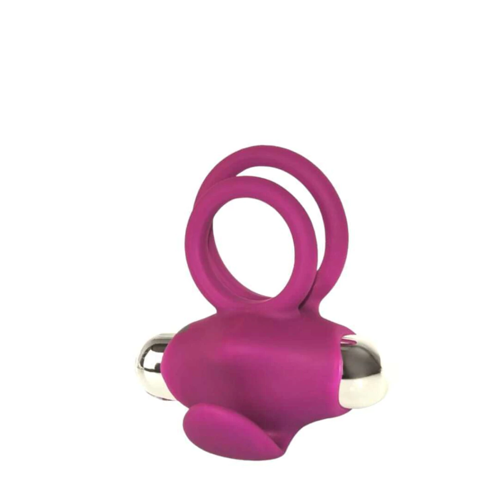Este anillo Dual Cock Rings ofrece doble estimulación, por un lado mantienen la erección del pene, logrando la firmeza en la misma y retardando la eyaculación sujetando pene y testículos; y por el otro la estimulación del clítoris con el roce por medio de la penetración. En un material ultra resistente; con un motor interno potente que posee 10 vibraciones, recargable, con bullet extraíble, único en el mercado. Su diseño estimulador, hará que su oreja roce perfectamente con el clítoris. Tiene buen volumen de superficie.