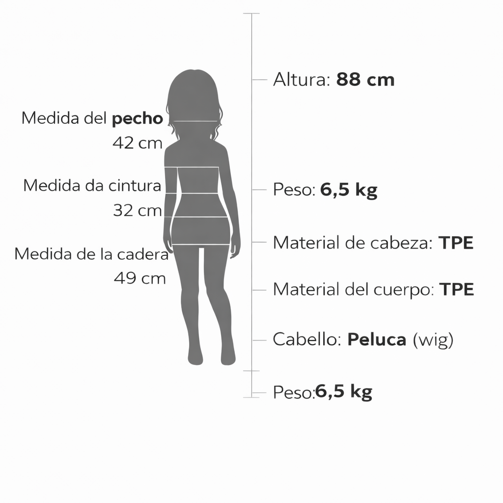 TPE realista · Cabeza y cuerpo fabricados en material flexible